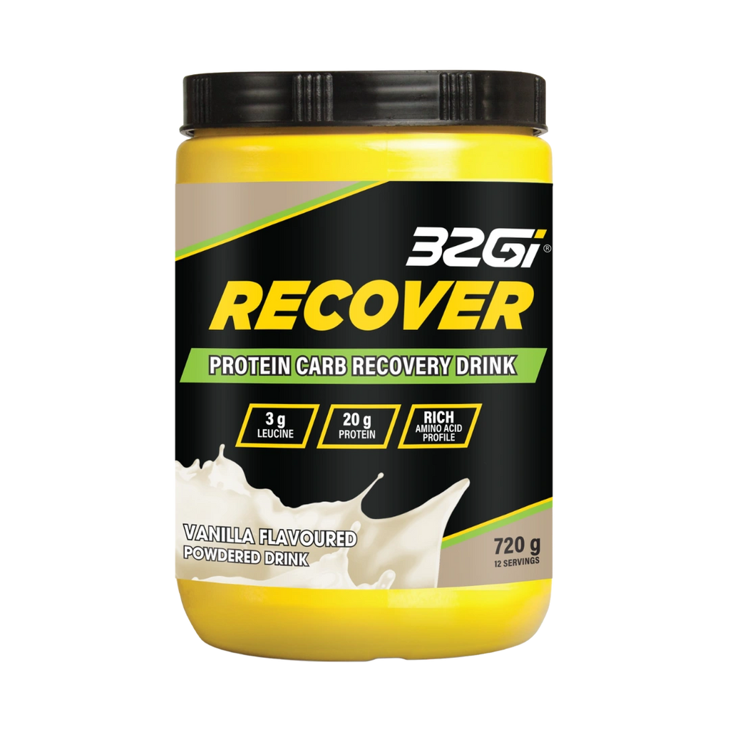 32Gi Recover is a unique vegetable protein recovery formula using a 1:3 PROTEIN to CARBOHYDRATE ratio. The 3:1 carbohydrate to protein ratio can assist in delaying the onset of muscle fatigue during high intensity exercise. Recover contains all the essential and non-essential amino acids and is naturally high in BCAA's and Glutamine.