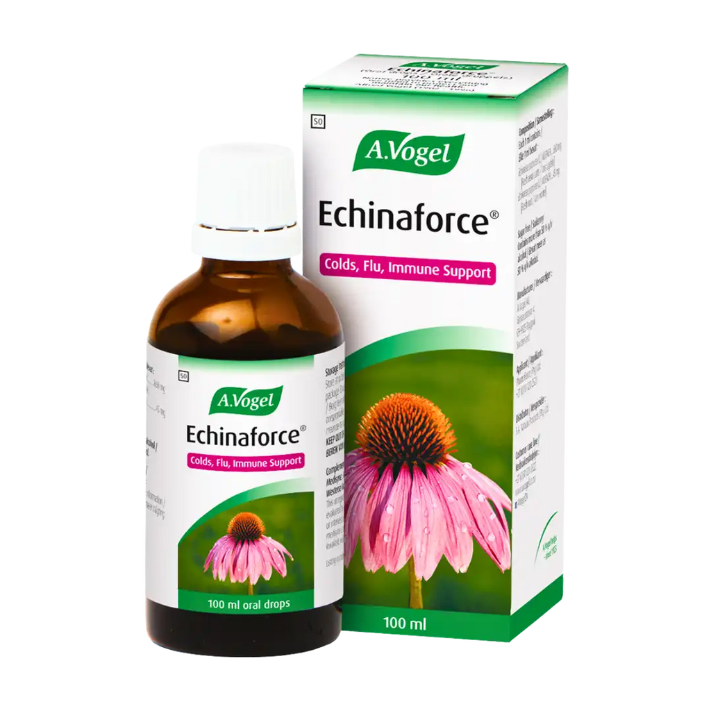 A. Vogel Echinaforce, 100ml hould be your first line of defence in winter. The herbal remedy with fresh plant extracts aids in the prevention and treatment of colds, flu and other respiratory tract infections, as well as sore throats and mild lower urinary tract conditions.