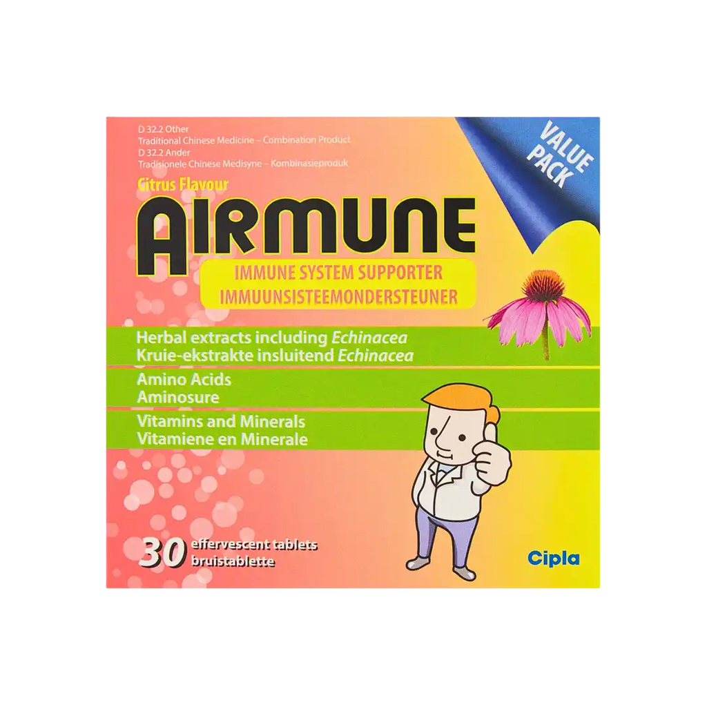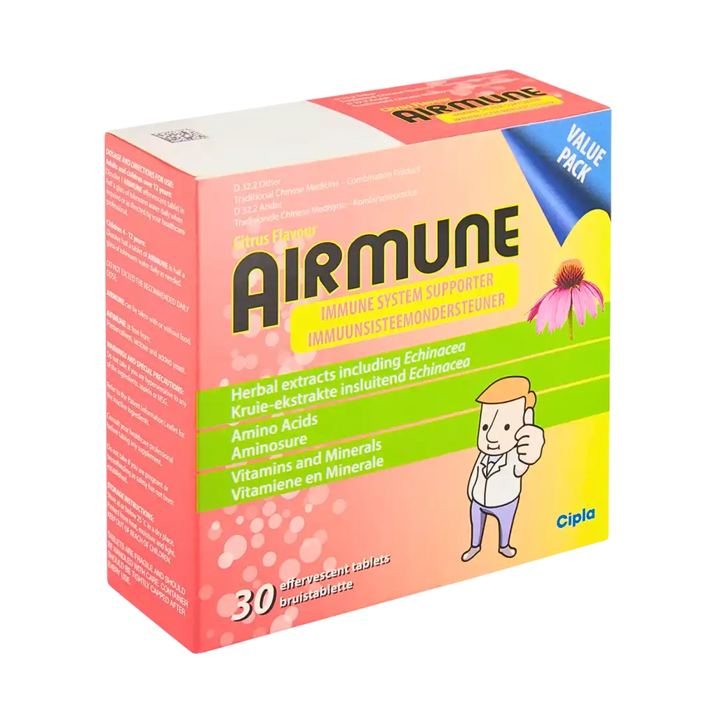 Airmune effervescent tablets have immune boosting herbal extracts, amino acids, vitamins and minerals that help to relieve the symptoms of colds and upper respiratory tract infections.1