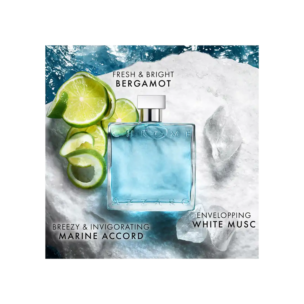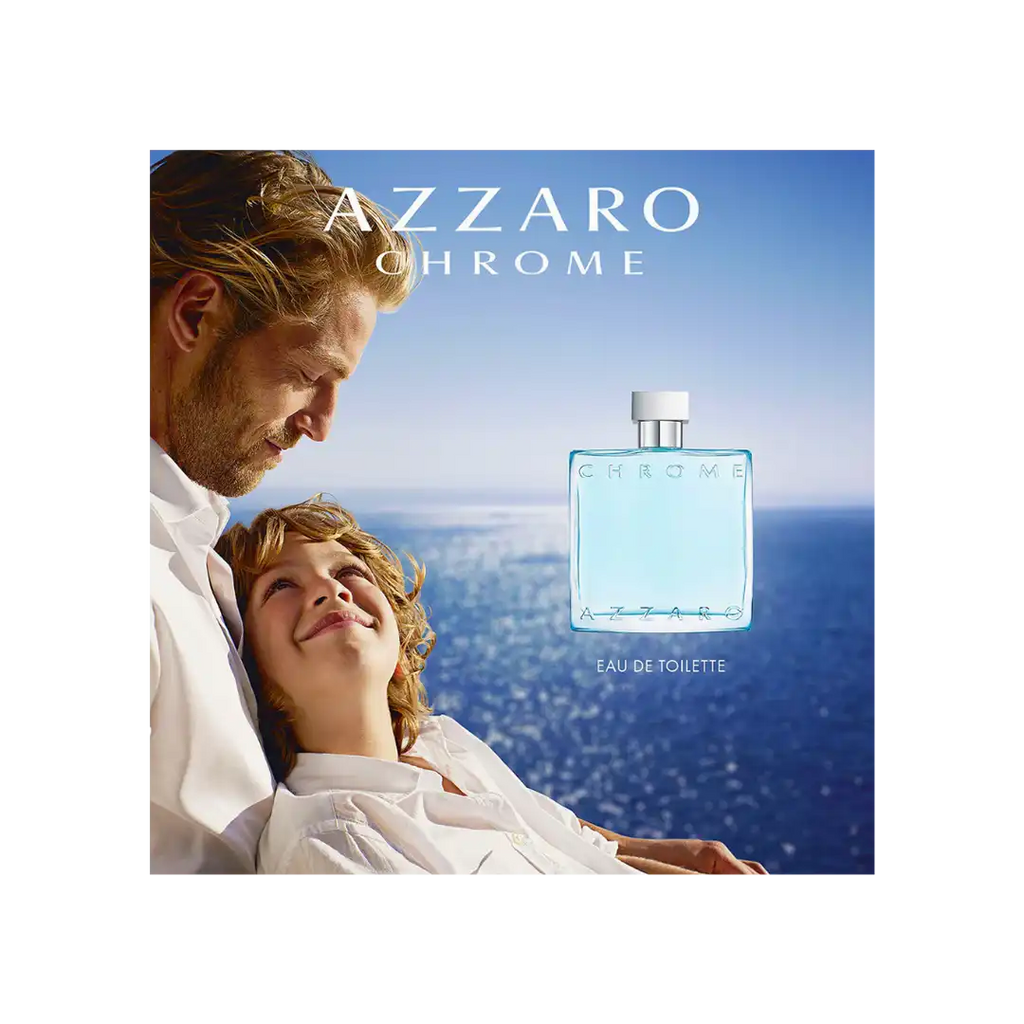Azzaro Chrome is an ode to the unwavering bond between father and son. A fragrance for men with an invigorating yet comforting freshness: the sophisticated, fresh scent of citrus and white musk combine with green and aquatic notes and the comfort of a sandalwood-amber-maté accord. This Eau de Toilette belongs to the “Citrus Aquatic Woody” family and features notes of bergamot*, transparent musk accord, and maté leaves