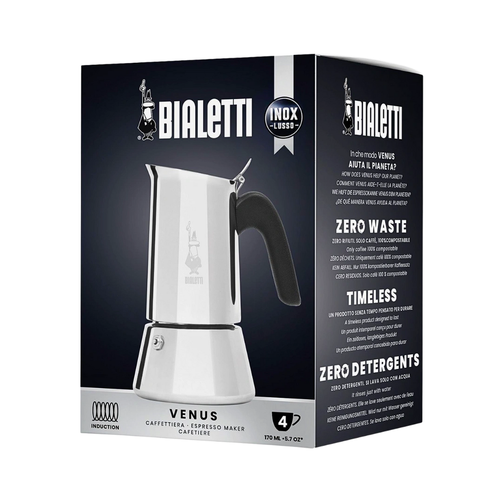 DURABILITY OVER TIME AND UNMISTAKEABLE STYLE, Bialetti “Venus” is made of sturdy, high-quality stainless steel, which guarantees durability over time, creates an unmistakeable look, and lets you use the pot on induction hobs too.