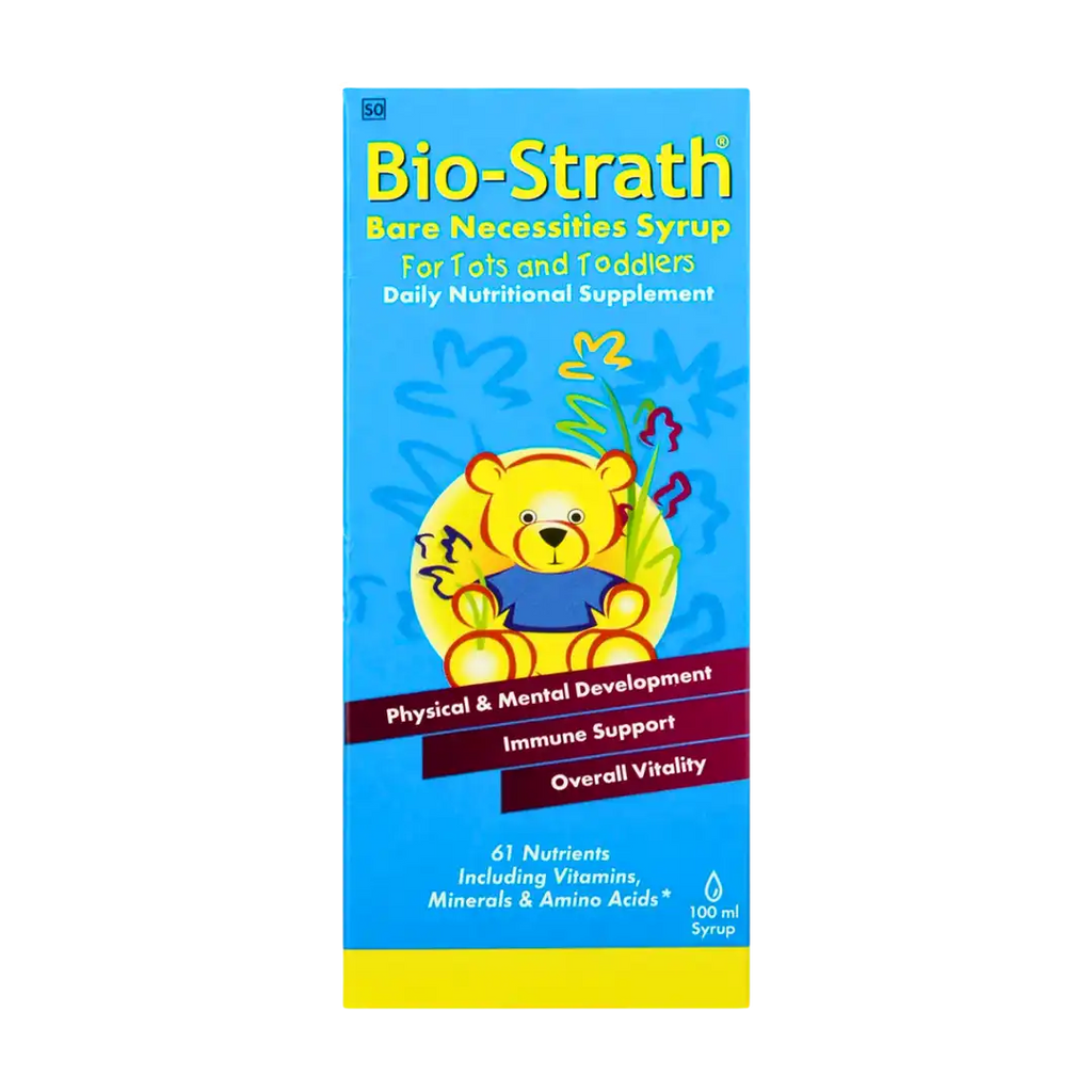 Bio-Strath Bare Necessities Syrup 100ml is a natural daily herbal supplement containing the nutrients and essential amino acids that growing bodies need. It helps improve vitality and is beneficial for active, energetic little bodies.