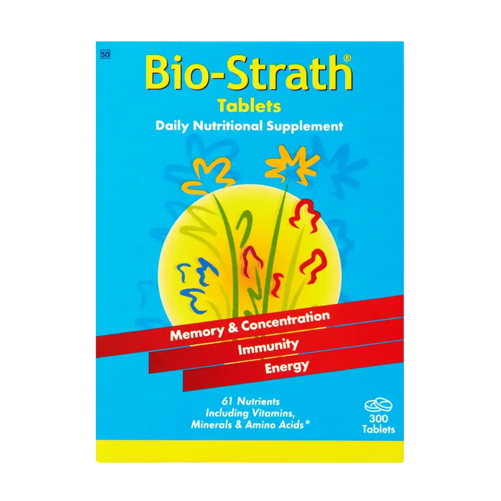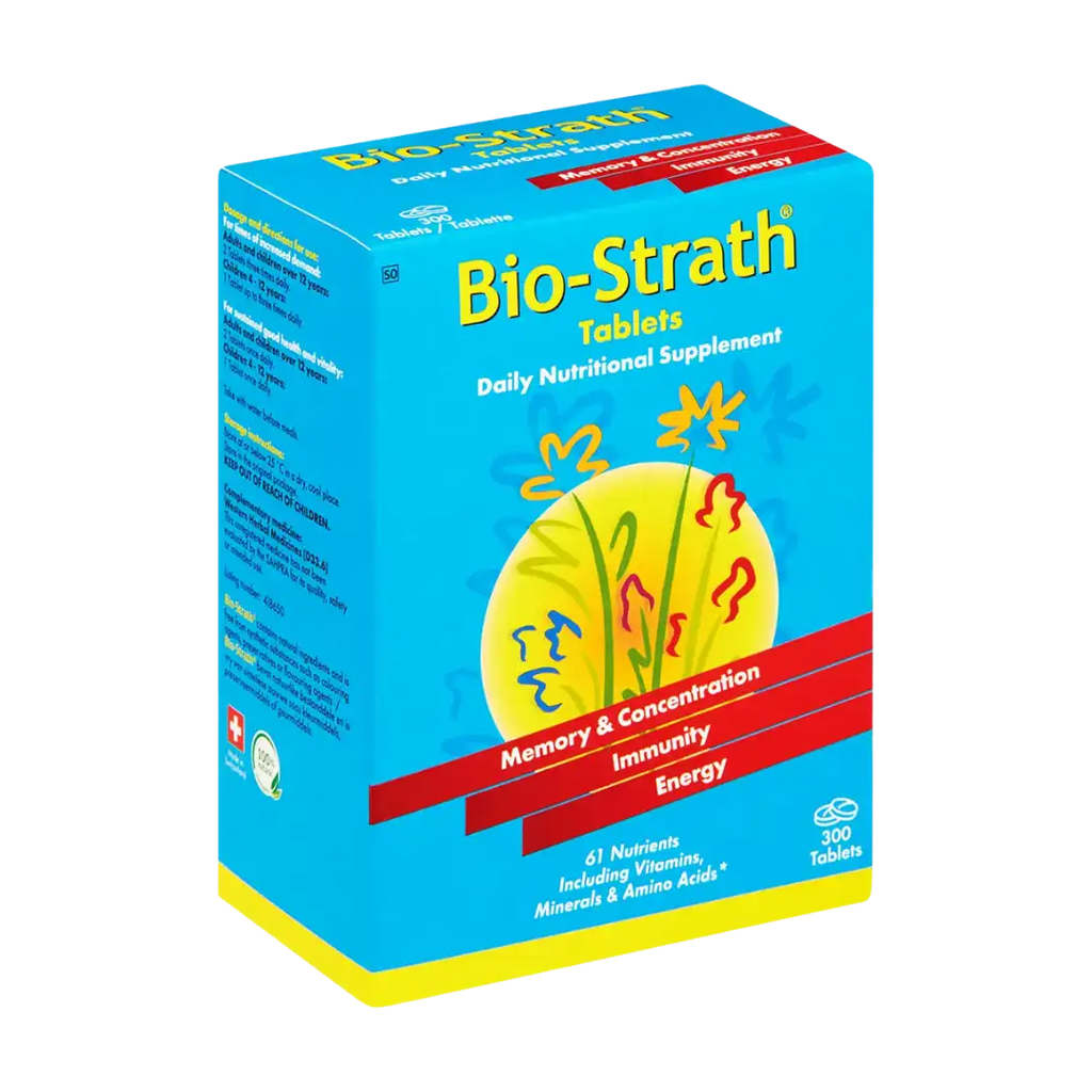 Bio-Strath Daily Nutritional Supplement 300 Tablets is a natural herbal supplement that helps to fight exhaustion, fatigue and exam stress and help build resistance to colds, infections and assist in speeds up recovery. The unique formulation of vitamins, minerals, trace elements and amino acids improve memory and concentration.