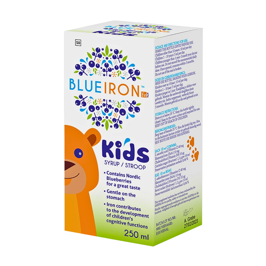 BlueIron Kids is a liquid iron supplement specially formulated for children, enriched with vitamins C and D. Made with pure mineral water and delicious handpicked Nordic blueberries, it supports normal cognitive development and the immune system. This supplement aids in normal cell division and energy-yielding metabolism. It's easily absorbed, gentle on little stomachs and perfect for kids who struggle with swallowing pills. We Love that BlueIron makes your children's daily nutrition enjoyable and effortless with a vegan-friendly supplement free from GMOs, gluten, artificial colours and flavours.