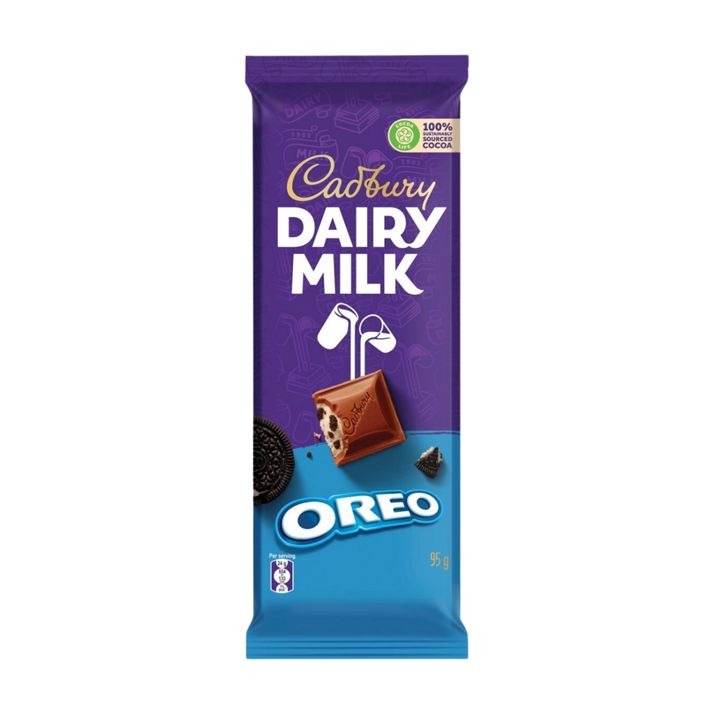 This creamy Cadbury Dairy Milk milk chocolate is packed with a soft vanilla flavour filling and crunchy Oreo pieces.
