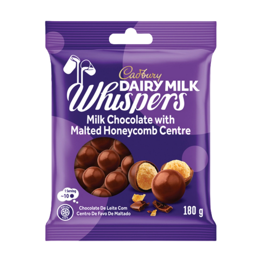 Melt-in-your-mouth malted honeycomb centres encased in creamy Cadbury Dairy Milk chocolate make Whispers a delectable treat to share with someone special.