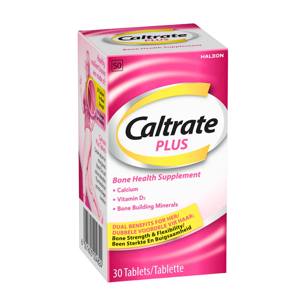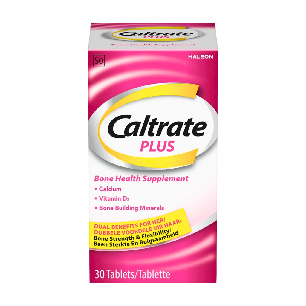 Caltrate Plus Bone Health Supplement 30 Tablets contain calcium for strong bones, vitamin D to aid calcium absorption, plus minerals that promote collagen formation.