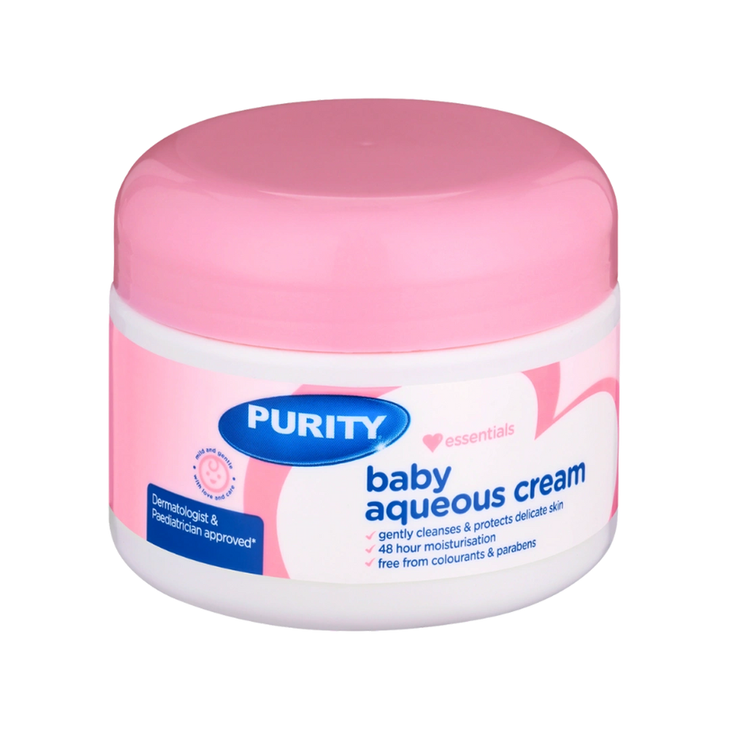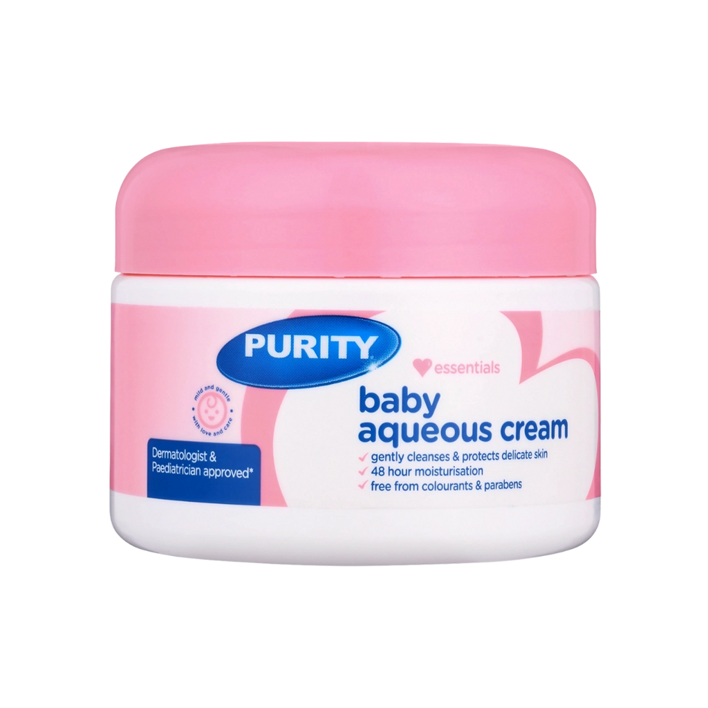 Purity & Elizabeth Anne's Essentials Baby Aqueous Cream 250ml gently moisturises and helps protect your baby's skin from dryness. Consultant dermatologist and paediatrician approved to give you the softest care.