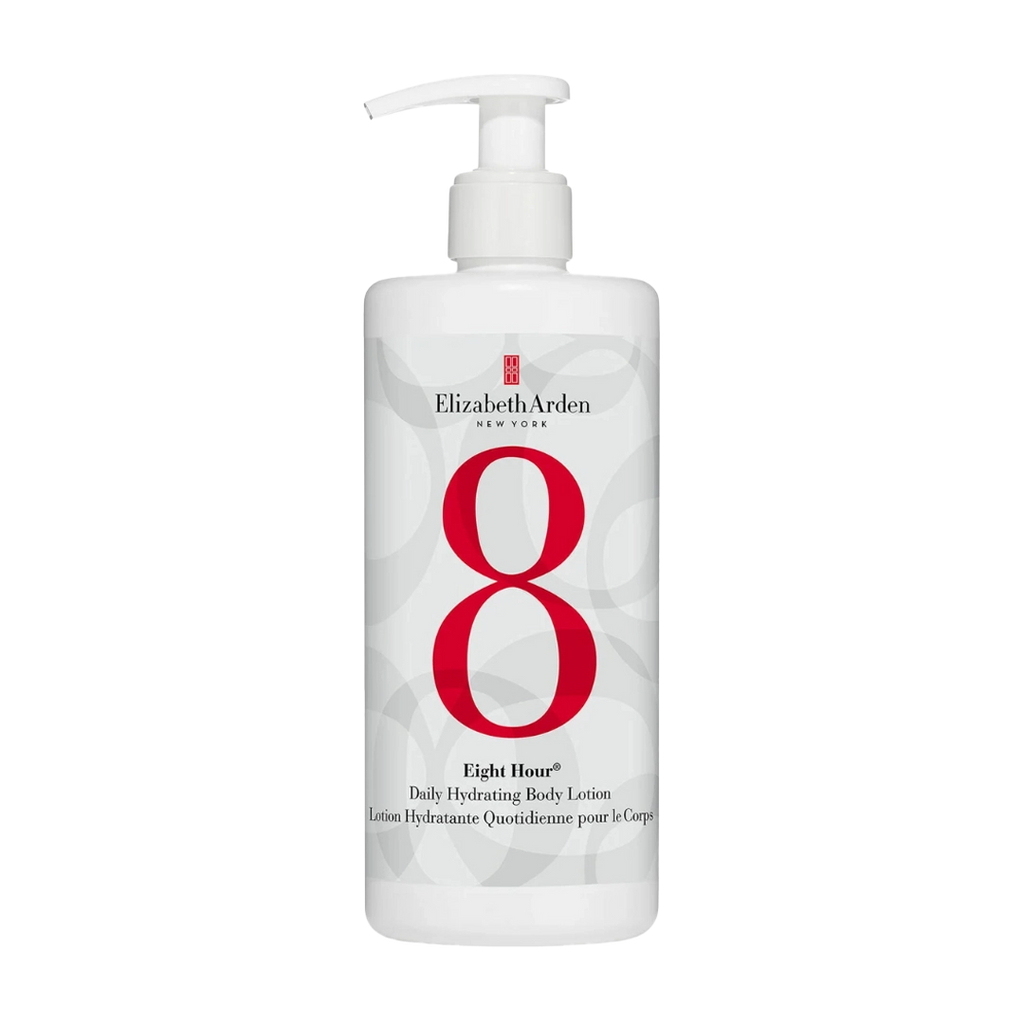 Achieve all day, all-over hydration with Elizabeth Arden’s NEW Eight Hour® Daily Hydrating Body Lotion. A multi-benefit, lightweight and long-lasting lotion that protects and conditions dry skin. Infused with naturally derived Shea Butter, Avocado Oil, Glycerin, and a natural origin Prebiotic Complex to help relieve dry skin and strengthens skin’s moisture barrier leaving hydrated, luminous and healthy-looking skin. Fast absorbing, non-greasy formula with an uplifting scent softens and smooths skin. To use, simply apply liberally all over body, morning and night. Vegan.