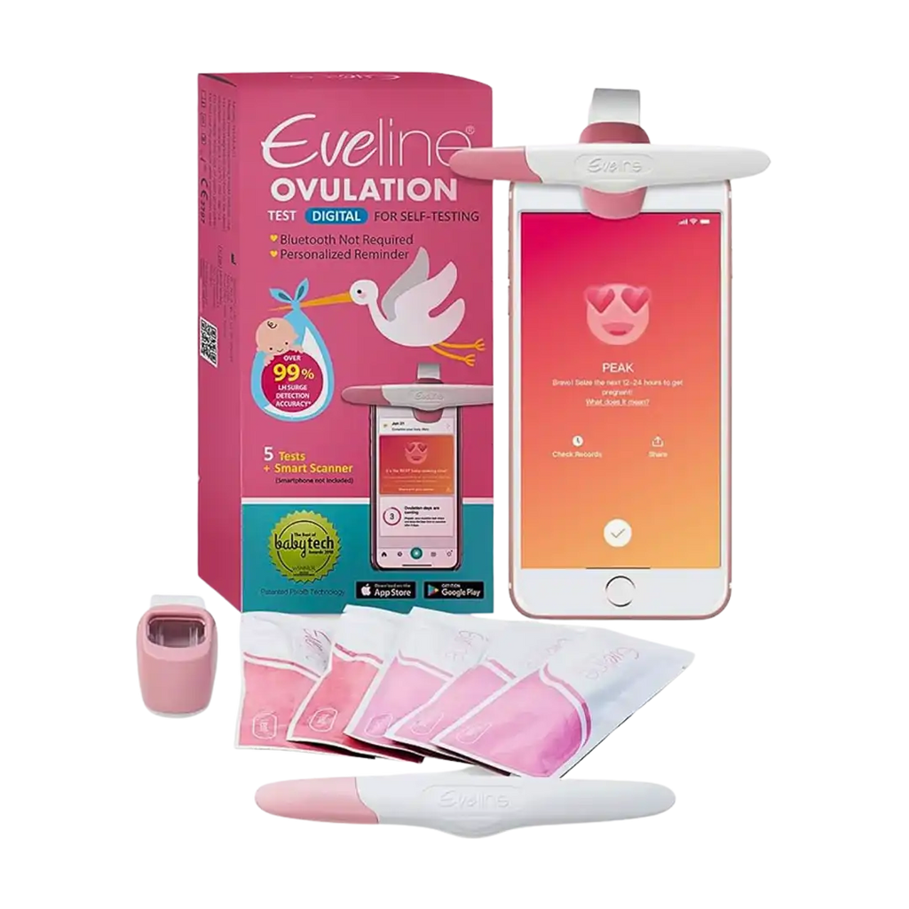 Eveline transforms your smartphone into a modern fertility guide. We combine LH diagnostic strips with our patented PixoTech®, which allows your phone camera to track LH surges with pinpoint accuracy. The Eveline APP simplifies the recording process while the built-in smart algorithm calculates your ideal timing for intimacy.
