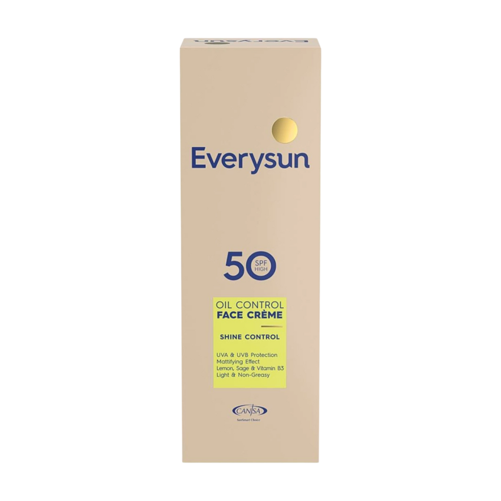 Everysun Oil Control SPF 50 Face Créme provides high-level sun protection in a lightweight, non-greasy formula. It offers broad-spectrum UVA and UVB protection while managing excess oil and maintaining a matte finish.