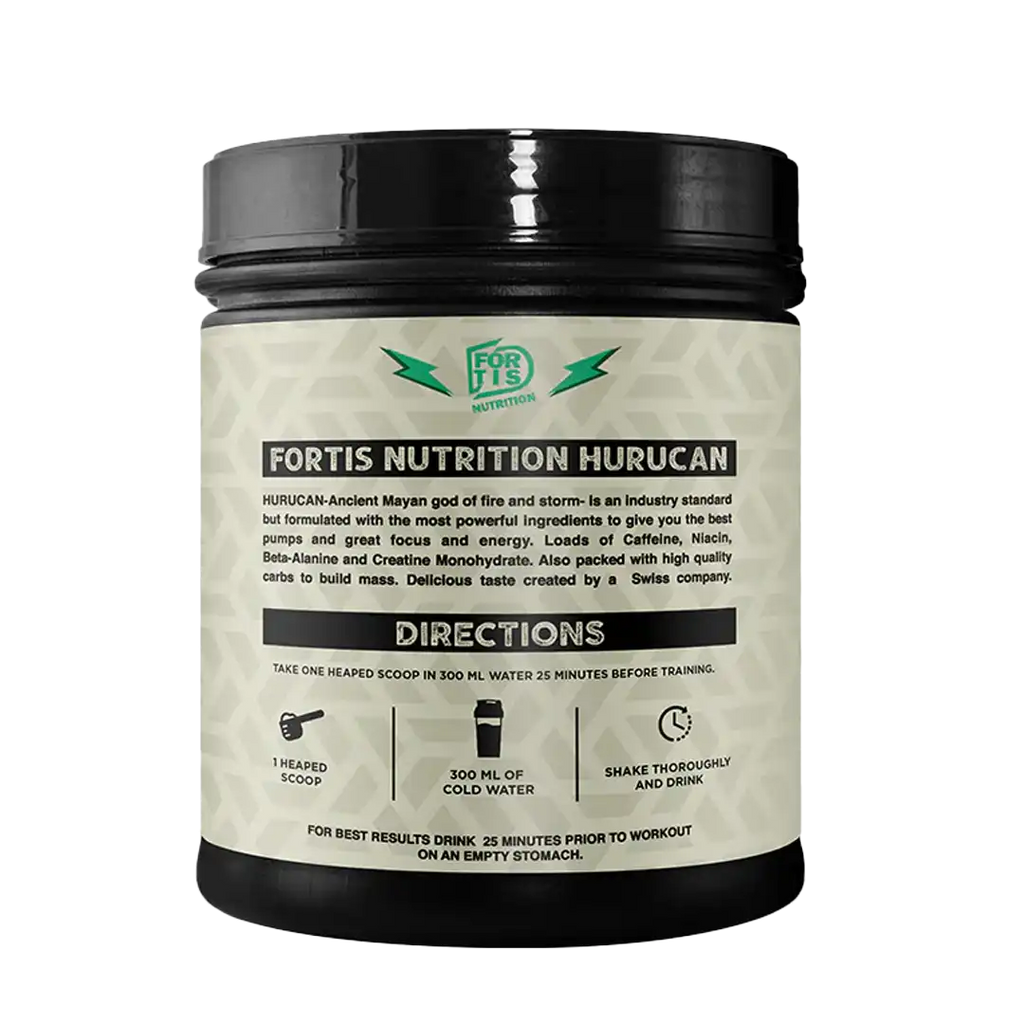 Hurucan - Ancient Mayan god of fire and storm - is an industry standard but formulated with the most powerful ingredients to give you the best pumps and great focus and energy. Loads of Caffeine, Niacin, Beta-alanine and Creatine Monohydrate. Also packed with high-quality carbs to build mass. Delicious taste created by a swiss company.