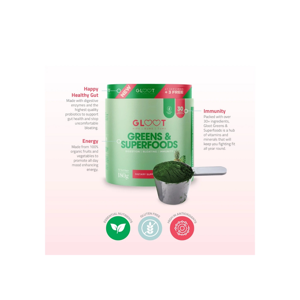 Dosage and Directions: Simply mix 1 scoop of Gloot Greens & Superfoods with 200-300ml Water and consume. Alternatively add to your favourite smoothie recipe for added benefits.