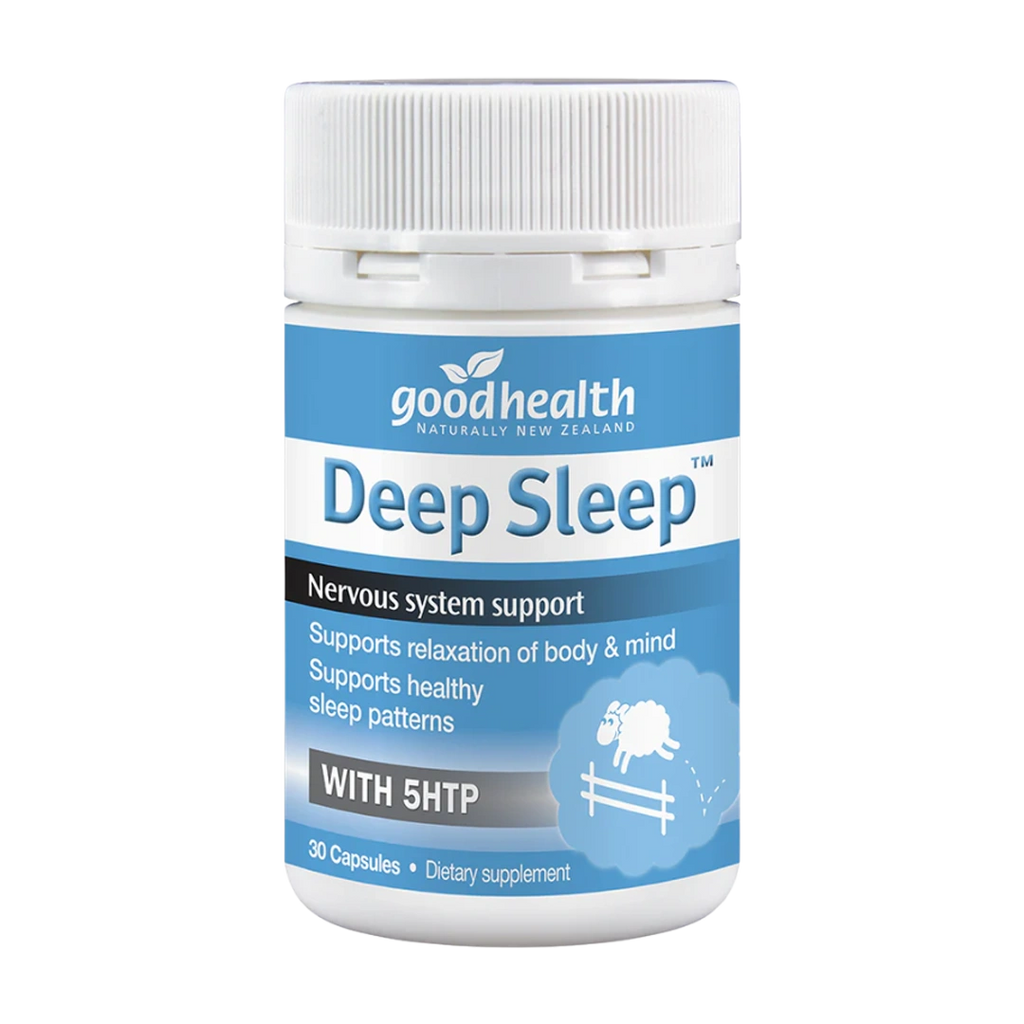 Good Health Deep Sleep is a unique formulation of 5HTP and herbs that work together to encourage relaxation and support sleep. Deep Sleep contains a plant derived extract of 5HTP providing the precursor to serotonin production in the body, one of the body’s natural sleep supports. Deep Sleep can help support sleep naturally, with added magnesium and vitamin B6 for sleep and mood support.