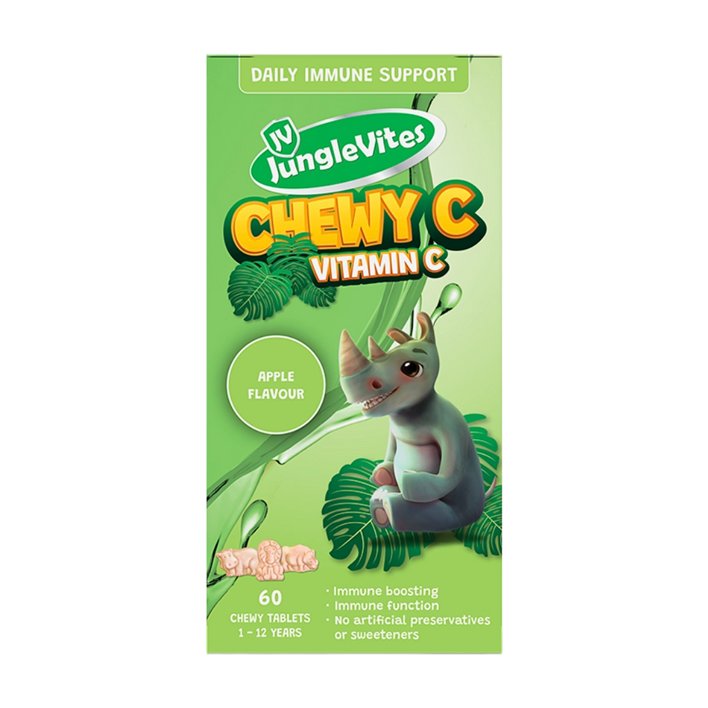 JUNGLEVITES CHEWY C APPLE is indicated for the maintenance of the immune function and good health. A children’s immune boosting health supplement to help keep kids healthy. A rich source of antioxidants for children over 1 year of age.