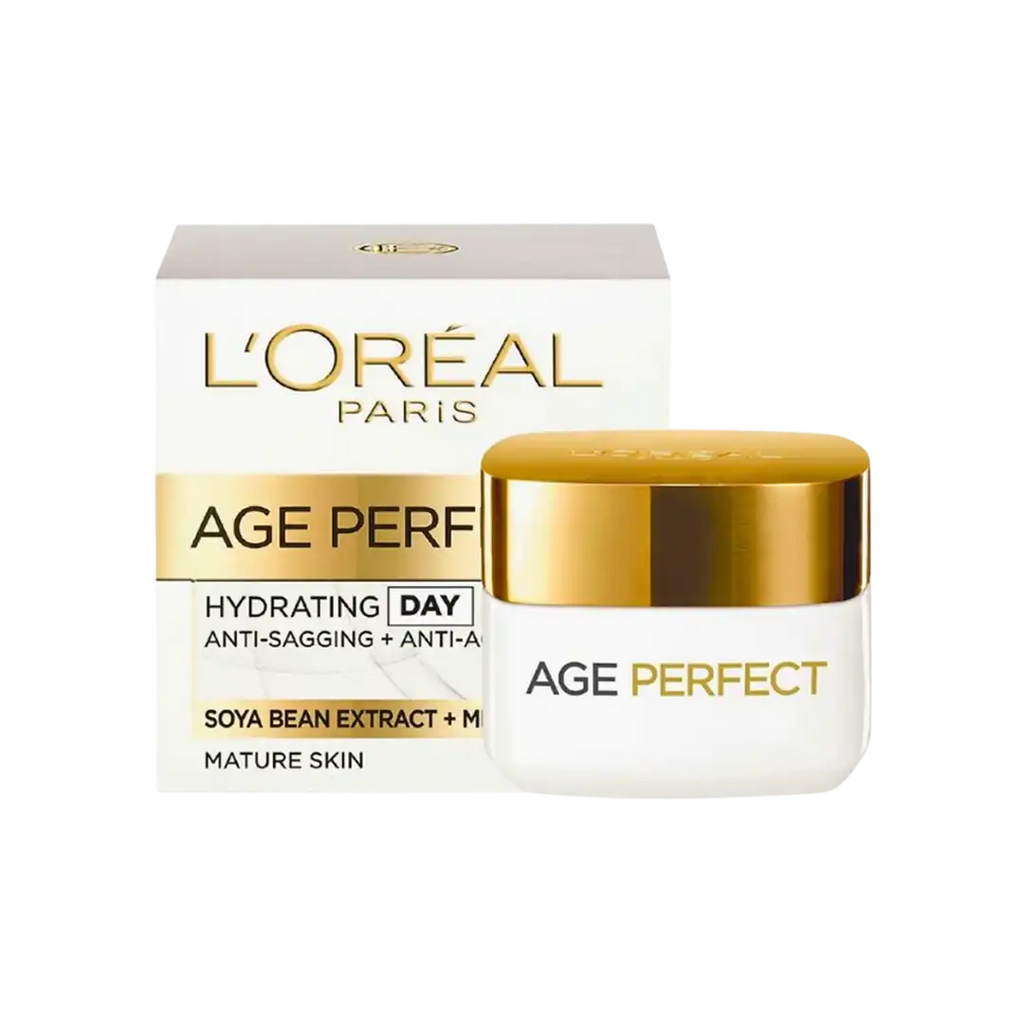 L'Oréal Paris Age Perfect Day Cream, a source of intense hydration for mature and menopausal skin. The luxurious moisturiser, enriched with Soya Peptides and UV filters, helps to firm facial contours to fight against skin sagging and to reduce the appearance of age spots. Skin feels hydrated, smoother and more comfortable.