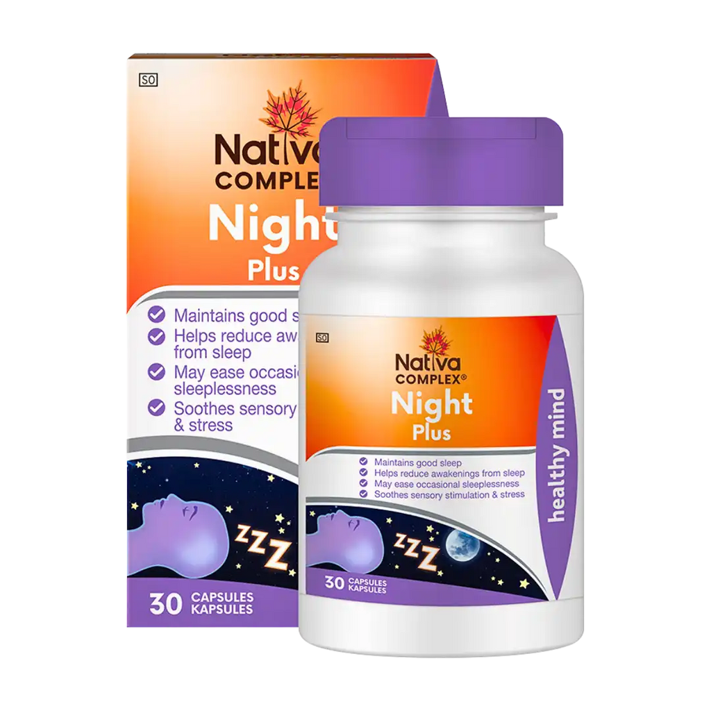 Nativa Complex® Night Plus is an herbal medicine that assists with relieving mild nervousness and sleep difficulties. The product contains valerian, hops, lemon balm, passion flower and magnesium.