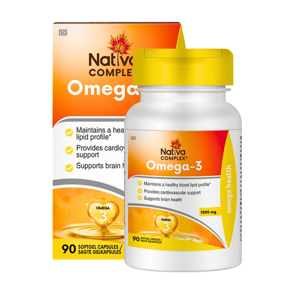 Nativa Omega-3 Complex 90 Capsules is formulated with 1000mg of Omega 3 fatty acids which can help a healthy blood lipid profile, healthy cardiovascular system and cognitive abilities.