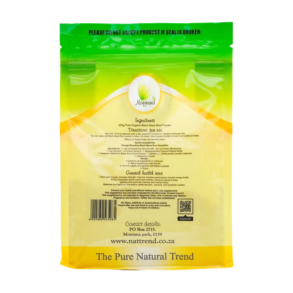 Ingredients: Each sachet contains 200g of Raw Black Maca Root powder.