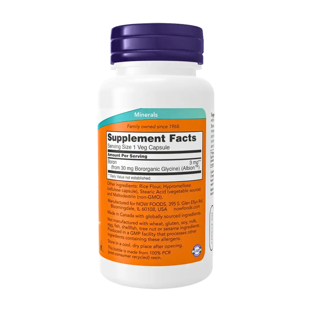 Boron is a biologically active trace mineral that affects calcium, magnesium and phosphorus metabolism. Boron is known to support bone strength and structure.