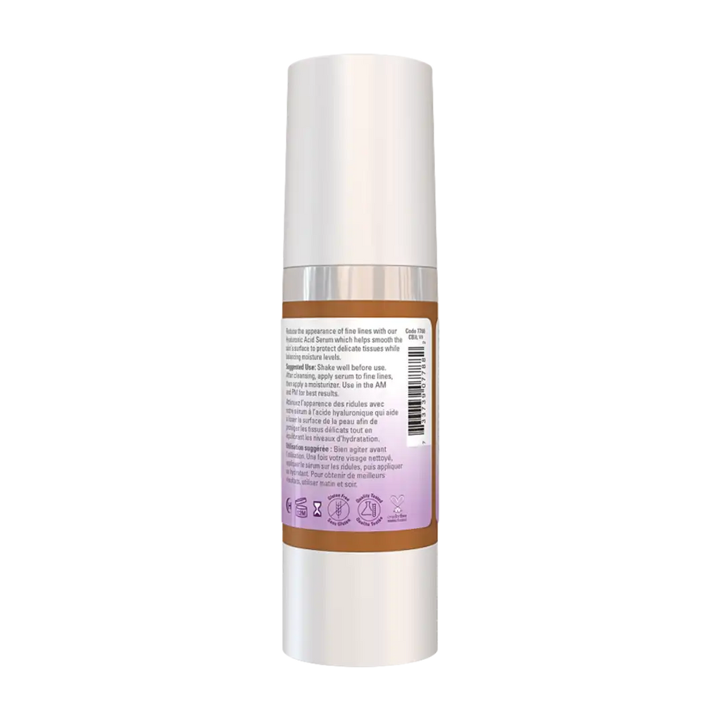 High potency Hyaluronic Acid Serum naturally reduces the appearance of fine lines and smoothes the skin’s surface to protect delicate tissue while balancing moisture levels.