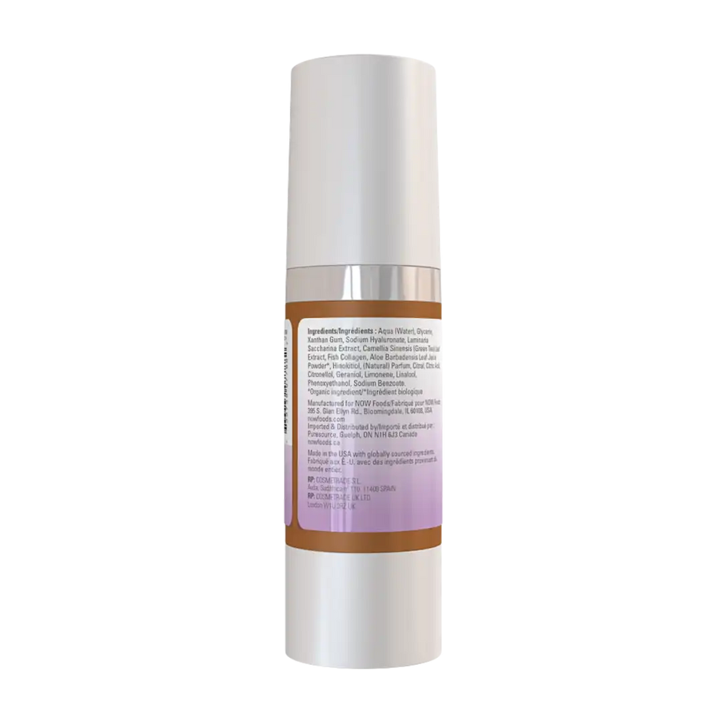 Ingredients: Aqua (Water), Glycerin, Xanthan Gum, Sodium Hyaluronate, Aloe Barbadensis Leaf Juice, Laminaria Saccharina Extract, Camellia Sinensis (Green Tea) Leaf Extract, Soluble Collagen, Hinokitiol, (Natural) Parfum, Citral, Citric Acid, Citronellol, Geraniol, Limonene, Linalool, Phenoxyethanol, Sodium Benzoate. *Organic ingredient
