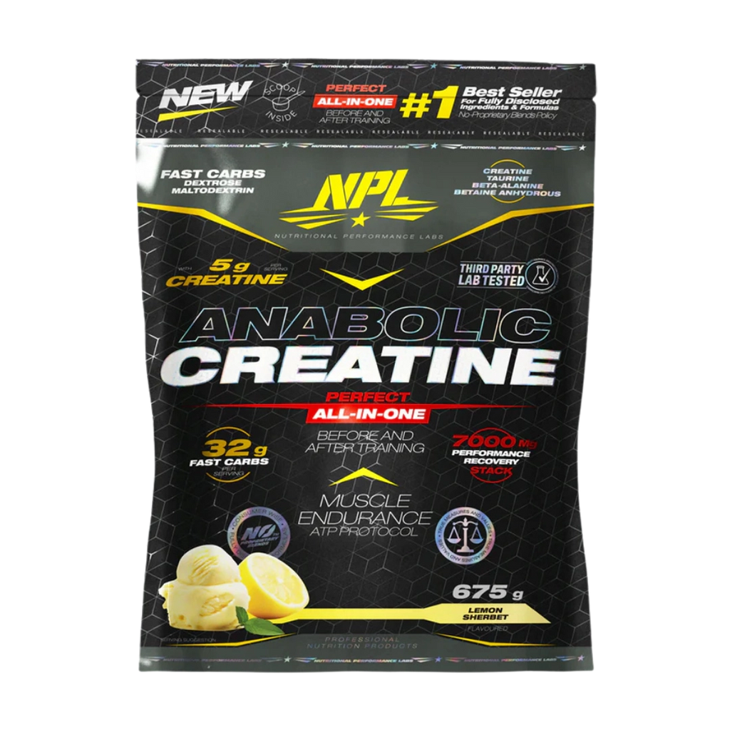 NPL Anabolic Creatine is an all-in-one, fast-delivering creatine formulation to boost power, endurance, recovery and muscle growth. With 5 g creatine monohydrate, rapid transport carbohydrates and betaine, taurine and beta-alanine, this powerhouse formulation is designed to accelerate your progress in the gym and enhance your results.