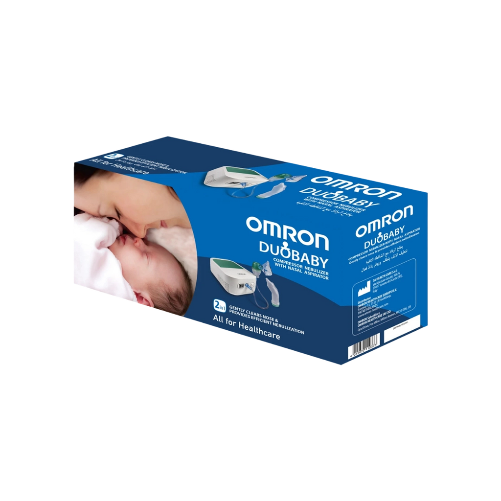 OMRON DuoBaby is a unique 2in1 compressor nebulizer with integrated nasal aspirator that can help treat the most common respiratory conditions of babies. The nasal aspirator gently cleans the nose, reduces congestion and allows the baby to breathe freely. The nebulizer enables efficient medication deposition to the upper and lower airways.