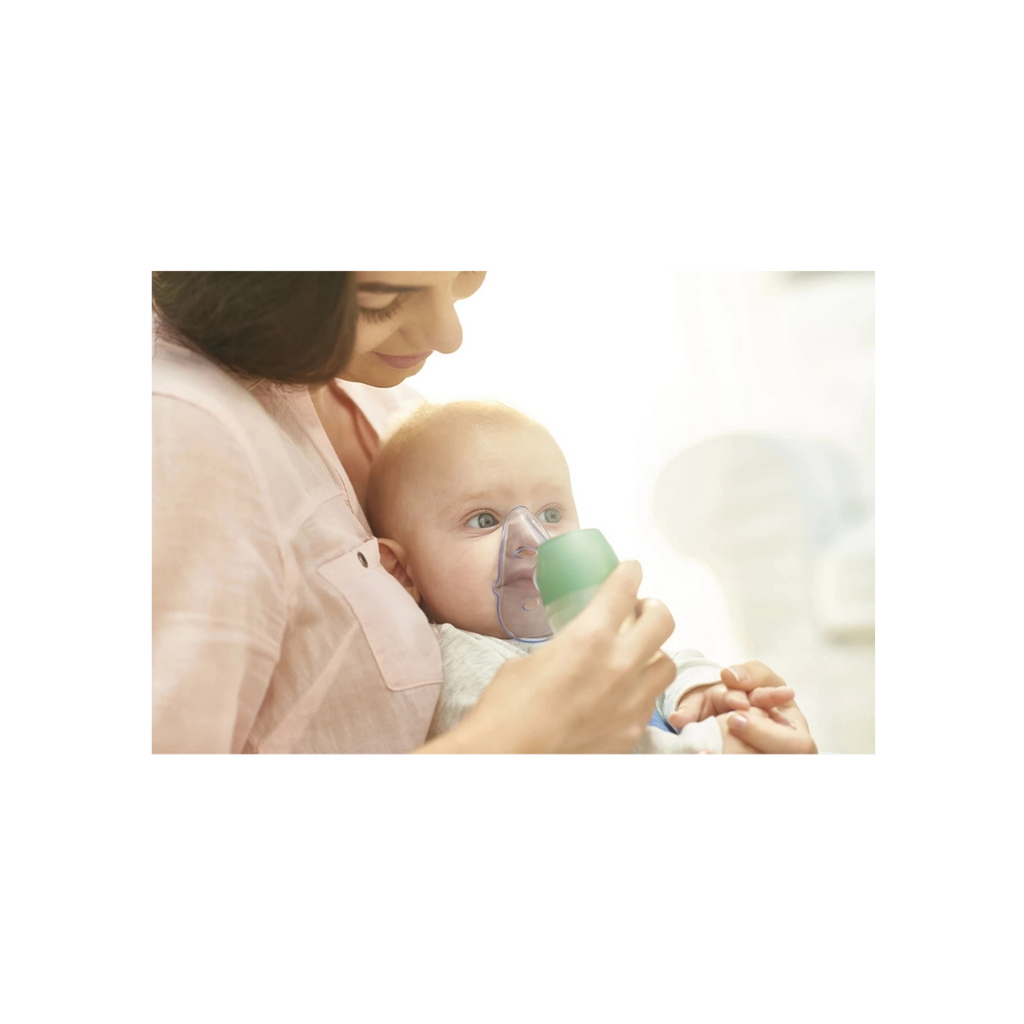 The nasal aspirator gently cleans the baby’s nose, reducing congestion and allowing him to breath freely. The nebulizer enables efficient medication delivery to the upper and lower airways.