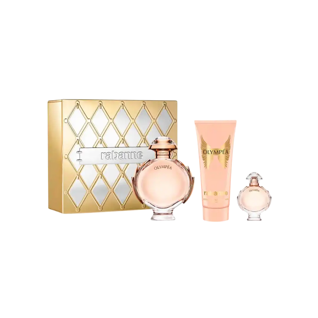 in an ultra-couture pattern metal set inspired by Rabanne's fashion. OLYMPEA Eau de Parfum gives back power to women. Notes of salty vanilla, green tangerine, water jasmine and ginger flower.