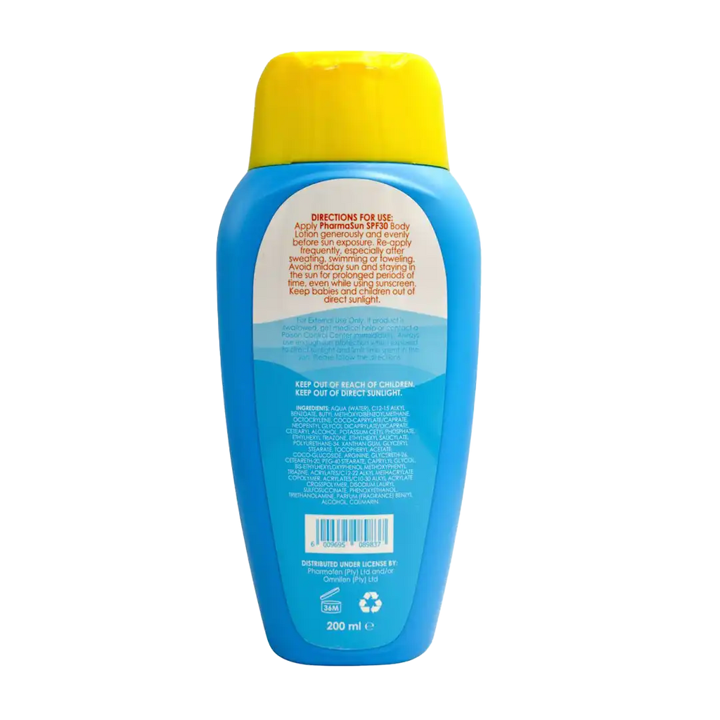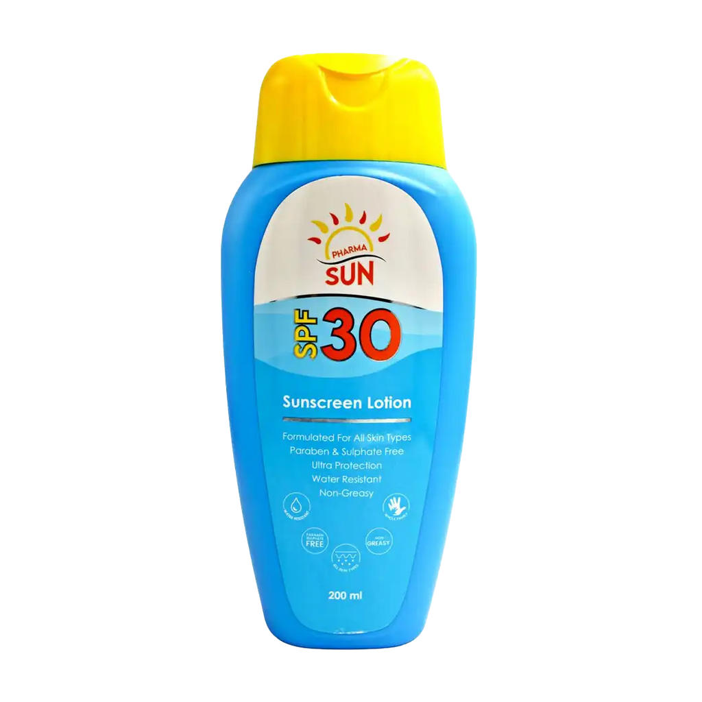 PharmaSun SPF30 Sunscreen Lotion is specifically formulated to make your skin feel refreshed and is non-greasy. This product contains highly effective UVA/UVB filters for immediate protection.