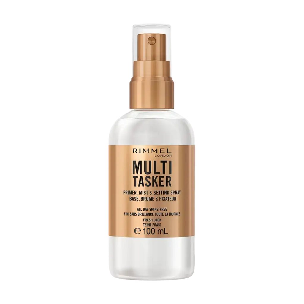 Rimmel 3-in-1 Multi-Tasker Primer, Mist & Setting Spray primes your complexion and has all-day setting power. This vegan face primer & setting spray improves the look of dull & dry skin and leaves skin feeling instantly revitalised. It also can be used to refresh your base and keep everything in place, perfect for when you need a cool-down or to give your makeup a little boost. • 3-in-1 Primer, Mist & Setting Spray • Primes your complexion and refreshes your skin • Face primer and setting spray with all-day setting power • Infused with Cucumber and Chamomile extracts • Oil-free vegan formula