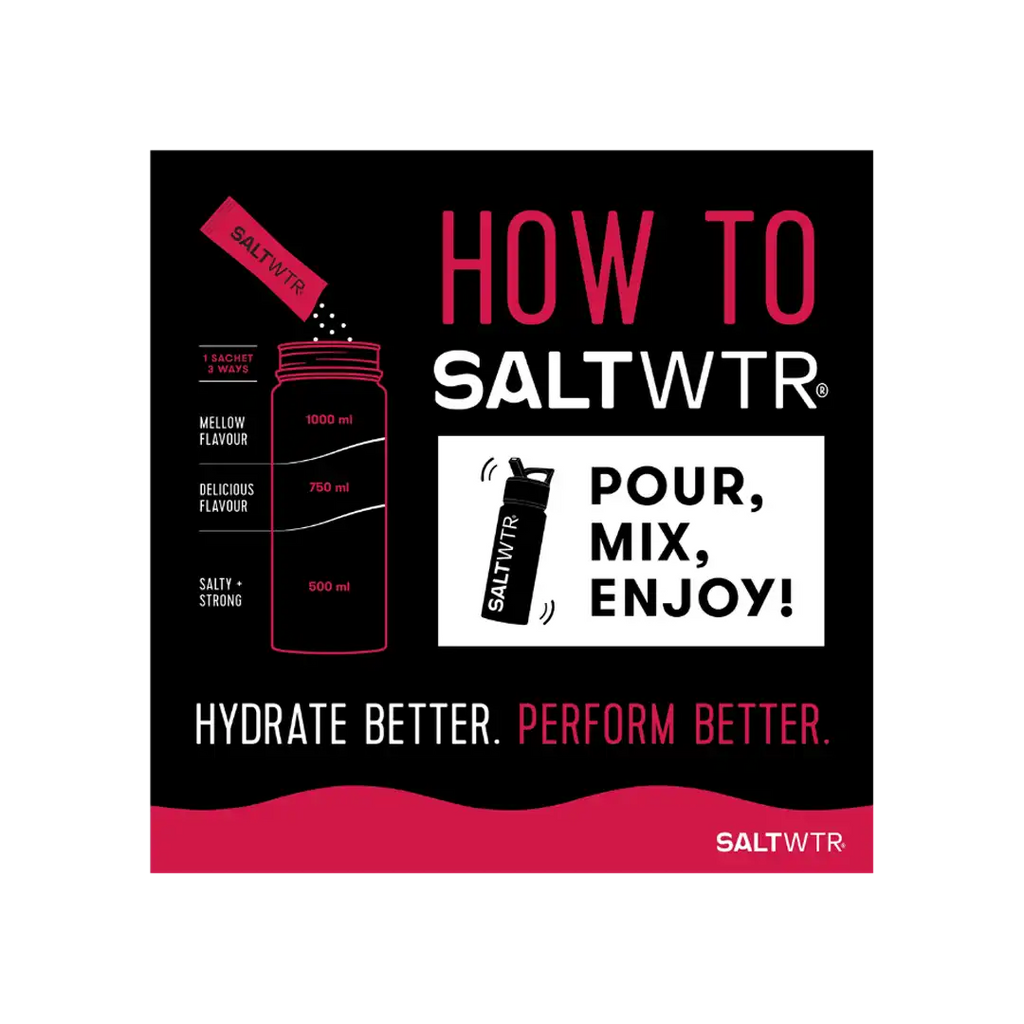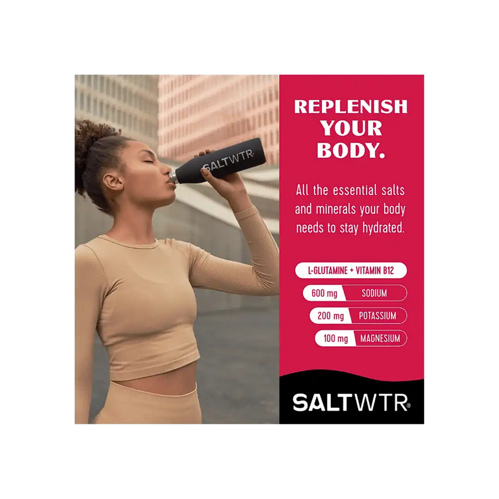 SaltWTR is a dual function electrolyte powder, providing the benefits of daily electrolytes with powerful functional ingredients and trace minerals to replenish and support your body daily, during, and after workouts.