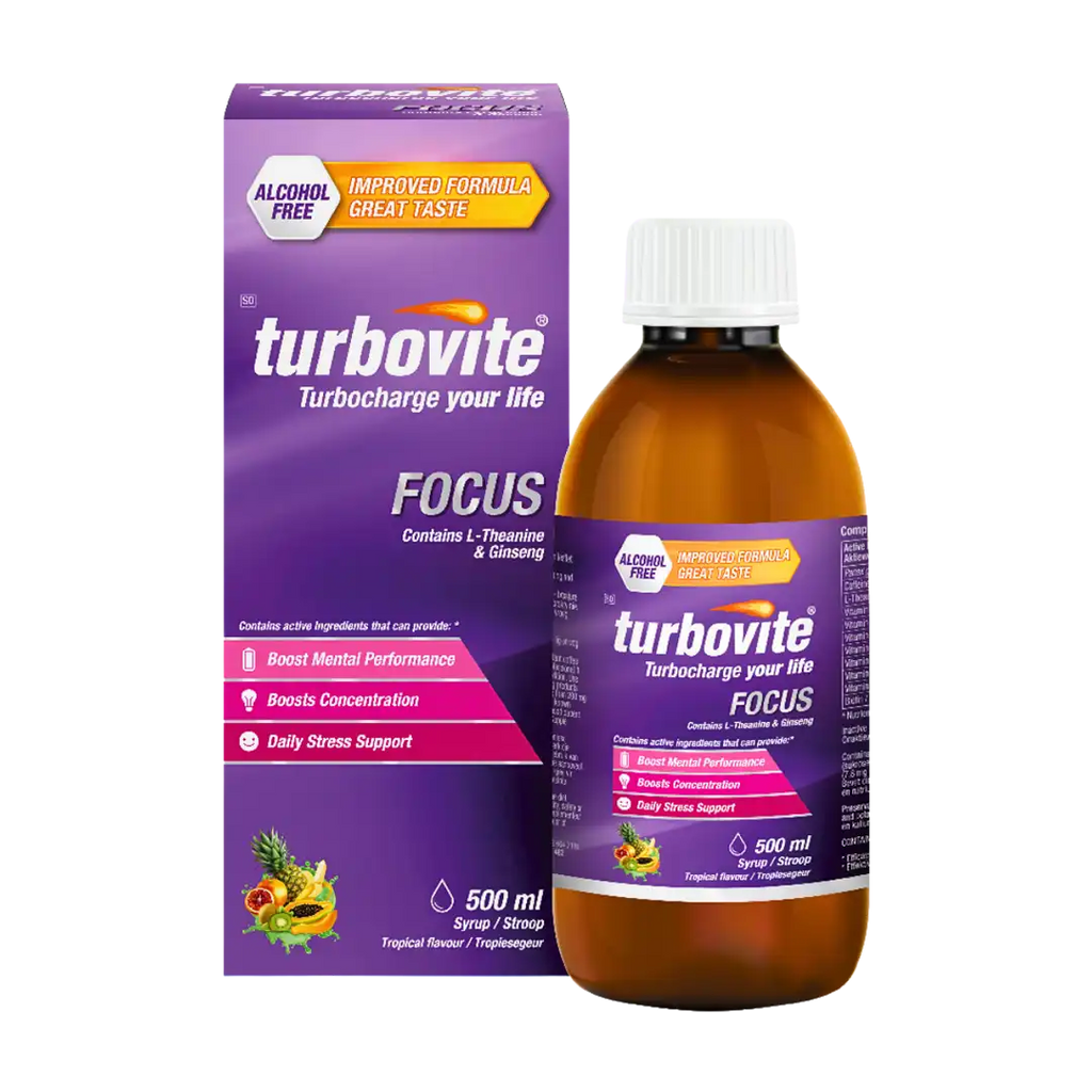 Turbovite Focus Syrup 500ml contains B-complex vitamins associated with the maintenance of healthy nerve function and overall wellbeing. Its unique formula aims to enhance physical energy, memory support and increased mental concentration.