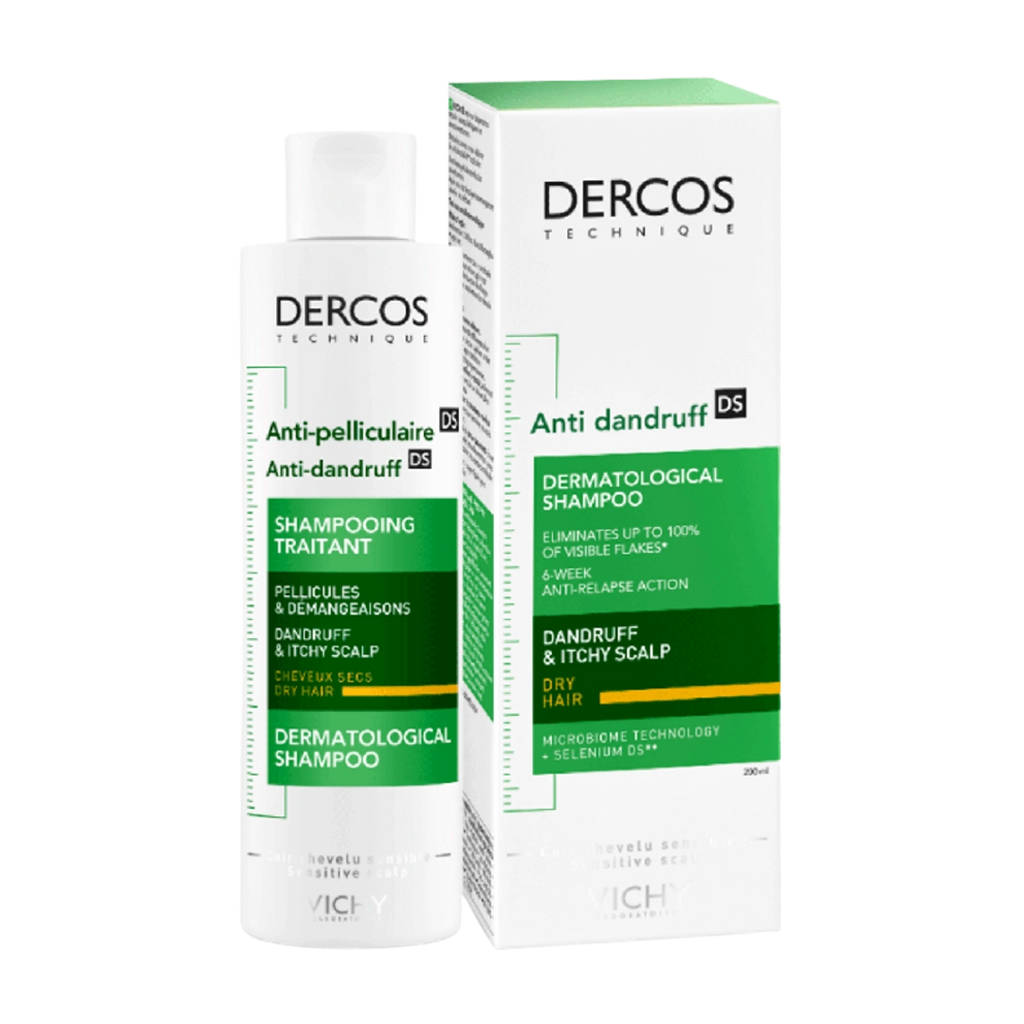 The Vichy Dercos Anti-Dandruff Shampoo for Dry Hair 200 ml provides dual care by effectively addressing dandruff and flakes on oily scalp, after just one wash. This anti-dandruff shampoo is Vichy's first patented formula with Selenium DS and Cohesyl, which promote scalp health for dandruff- and flake-free hair. Dercos Anti-Dandruff Shampoo relieves sensitive scalps, as research shows. All Vichy products are dermatologically tested, making them suitable for sensitive skin and scalp.